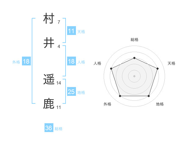 村井 遥鹿さんの外格は18画の4点!
