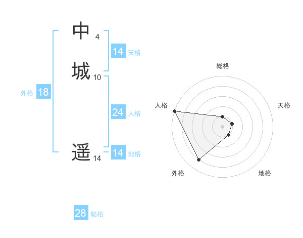 中城 遥さんの外格は18画の4点!