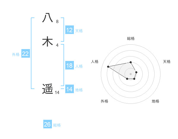 八木 遥さんの総格は26画の2点!