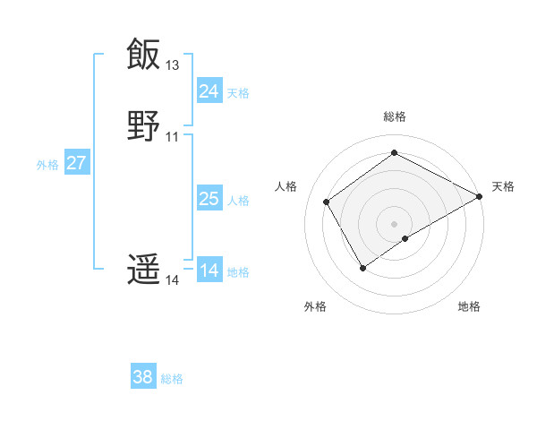 飯野 遥さんの天格は24画の5点!