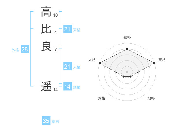 高比良 遥さんの総格は35画の4点!