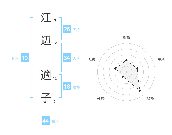 江辺 適子さんの総格は44画の2点!
