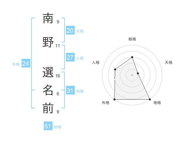 南野 選名前さんの総格は51画の3点!