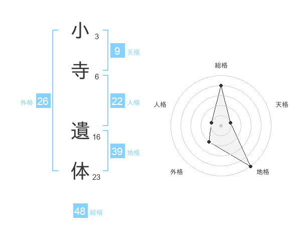 小寺 遺体さんの総格は48画の4点!