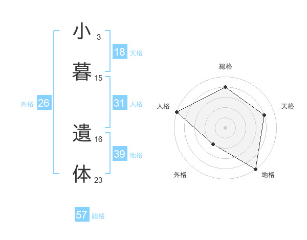 小暮 遺体さんの総格は57画の4点!