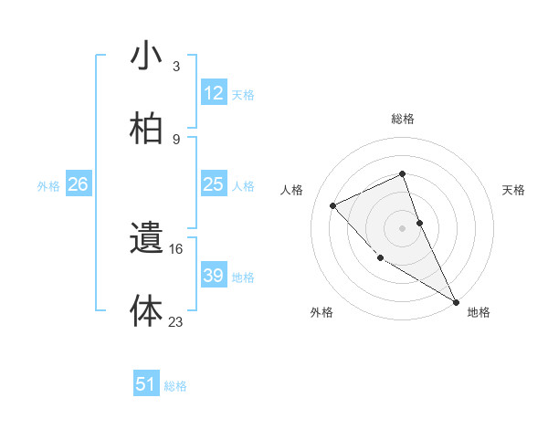 小柏 遺体さんの総格は51画の3点!