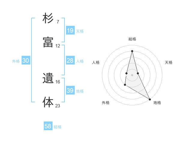 杉富 遺体さんの総格は58画の4点!