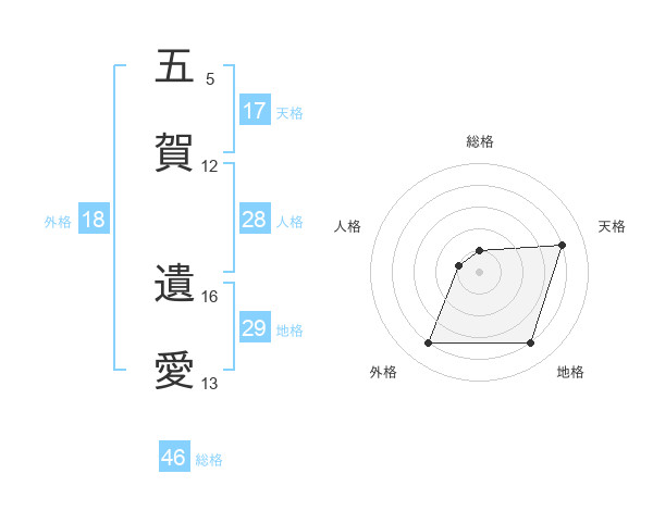 五賀 遺愛さんを姓名の画数から五運を鑑定