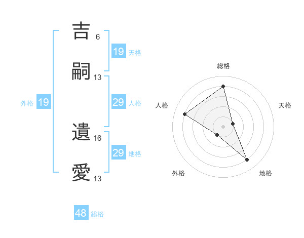 吉嗣 遺愛さんの総格は48画の4点!