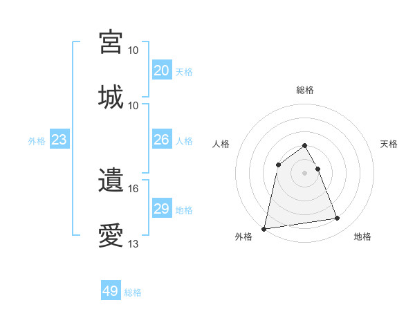 宮城 遺愛さんを姓名の画数から五運を鑑定