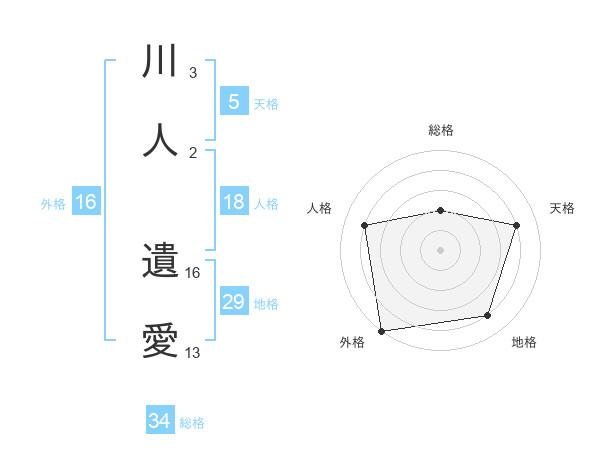 川人 遺愛さんの総格は34画の2点!