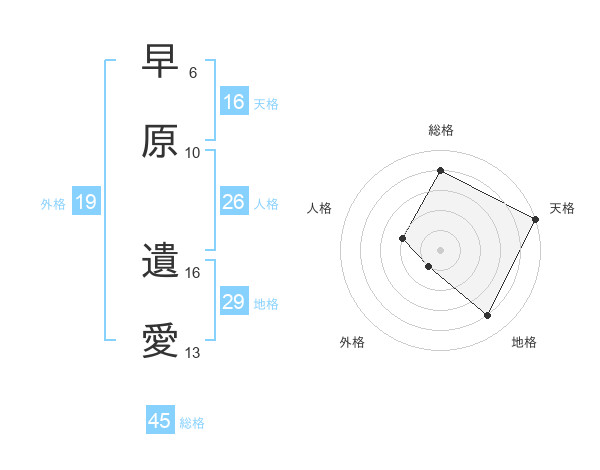 早原 遺愛さんを姓名の画数から五運を鑑定