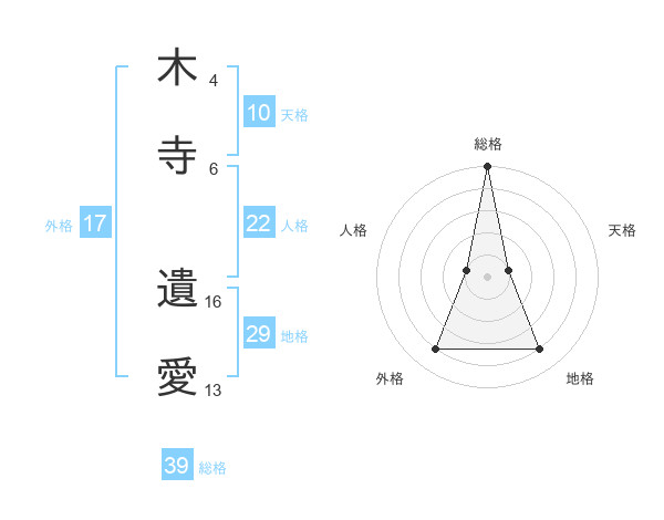 木寺 遺愛さんの総格は39画の5点!