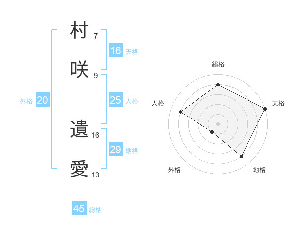 村咲 遺愛さんを姓名の画数から五運を鑑定