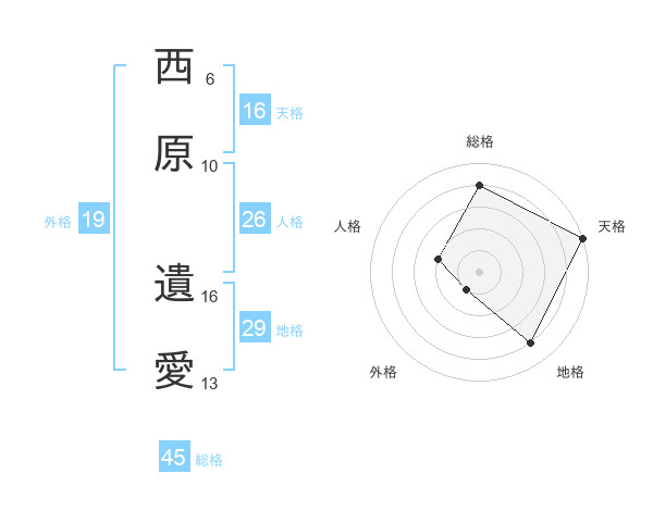 西原 遺愛さんの総格は45画の4点!