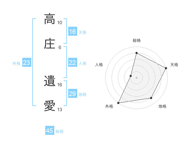 高庄 遺愛さんを姓名の画数から五運を鑑定