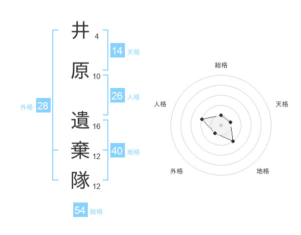 井原 遺棄隊さんの総格は54画の1点!