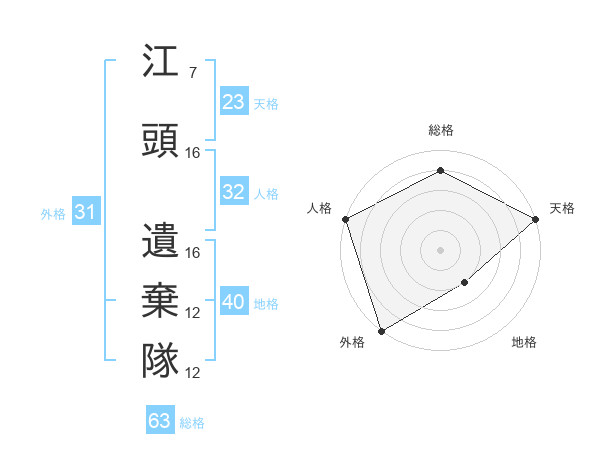江頭 遺棄隊さんの総格は63画の4点!