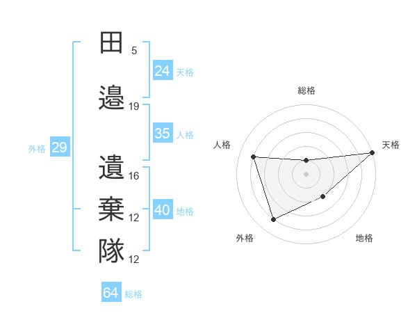 田邉 遺棄隊さんを姓名の画数から五運を鑑定