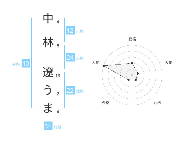 中林 遼うまさんを姓名の画数から五運を鑑定