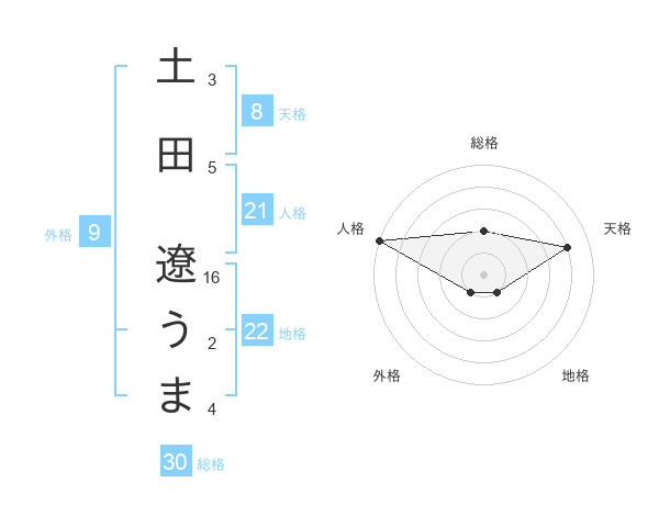 土田 遼うまさんを姓名の画数から五運を鑑定