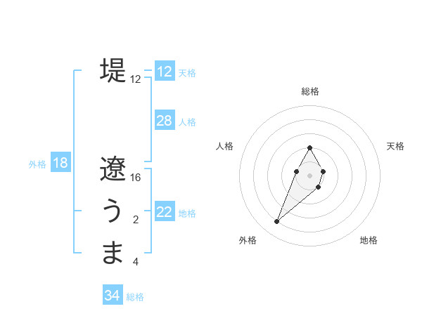 堤 遼うまさんを姓名の画数から五運を鑑定