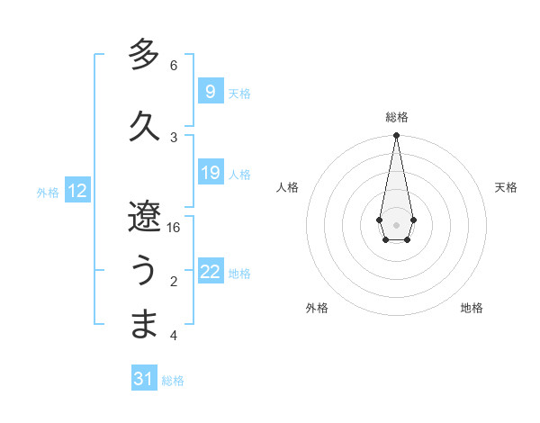 多久 遼うまさんの総格は31画の5点!