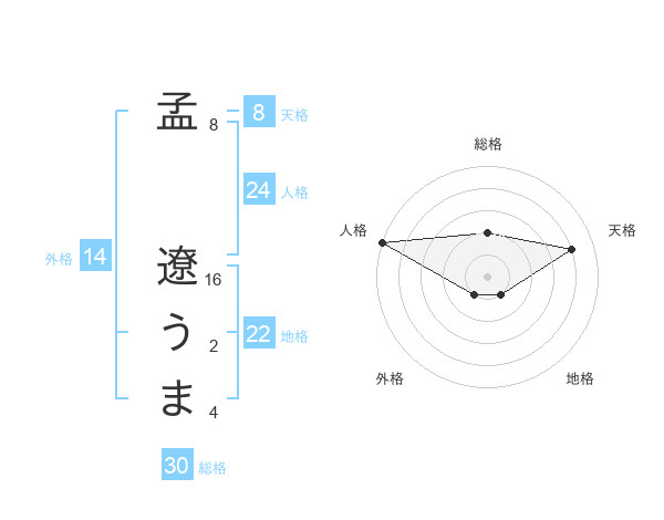 孟 遼うまさんを姓名の画数から五運を鑑定