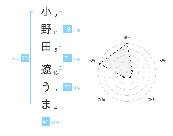 小野田 遼うまさんを姓名の画数から五運を鑑定