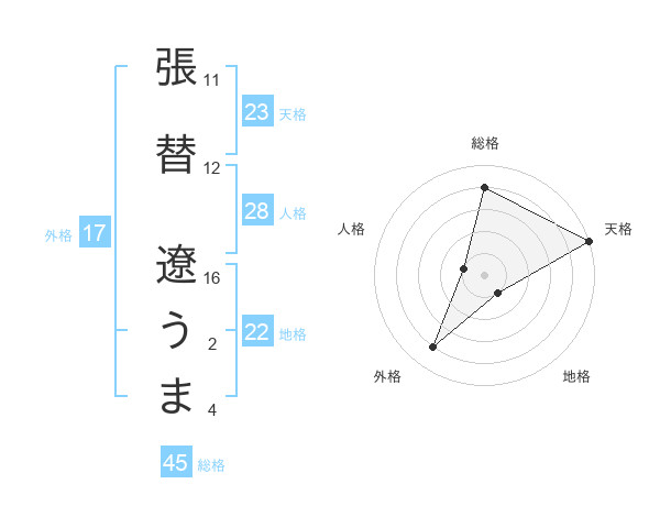 張替 遼うまさんを姓名の画数から五運を鑑定