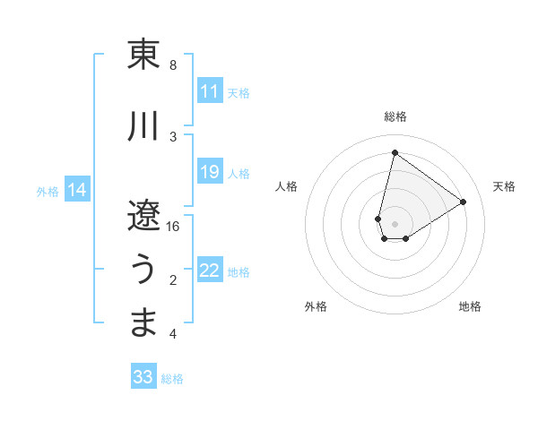 東川 遼うまさんを姓名の画数から五運を鑑定