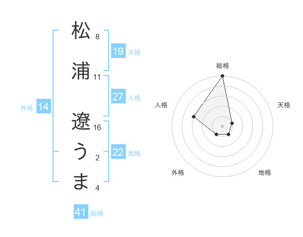 松浦 遼うまさんを姓名の画数から五運を鑑定