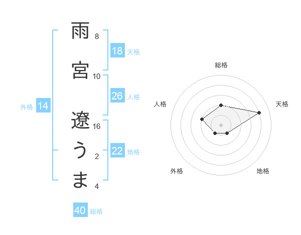 雨宮 遼うまさんを姓名の画数から五運を鑑定