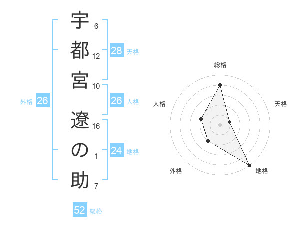 宇都宮 遼の助さんを姓名の画数から五運を鑑定