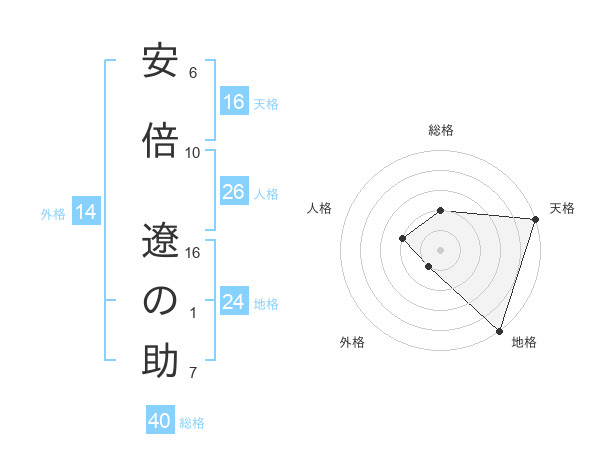 安倍 遼の助さんを姓名の画数から五運を鑑定