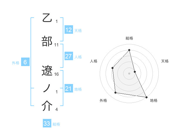 乙部 遼ノ介さんを姓名の画数から五運を鑑定