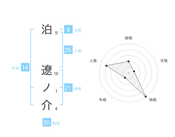 泊 遼ノ介さんの総格は30画の2点!