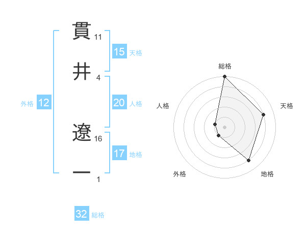 貫井 遼一さんを姓名の画数から五運を鑑定