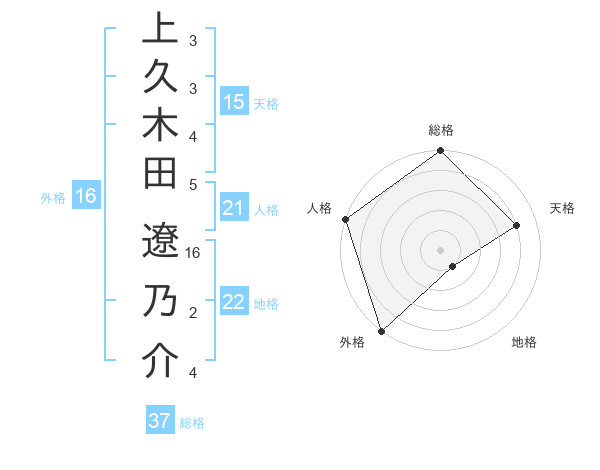 上久木田 遼乃介さんの外格は16画の5点!