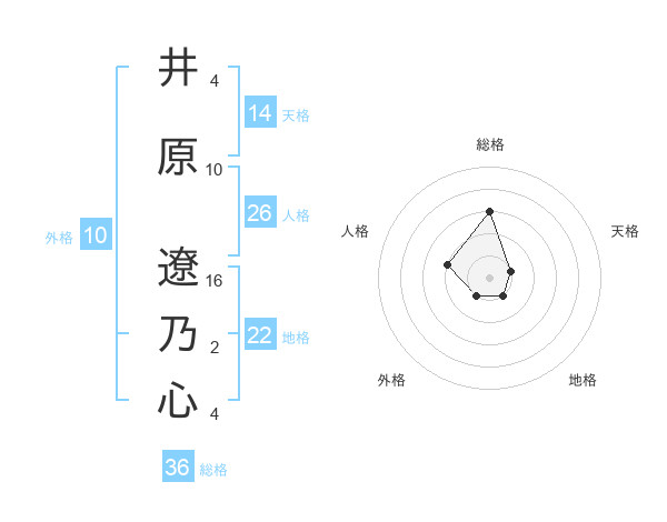 井原 遼乃心さんを姓名の画数から五運を鑑定