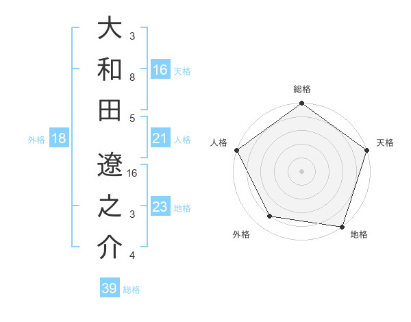 大和田 遼之介さんを姓名の画数から五運を鑑定