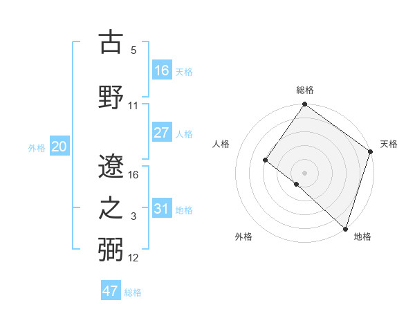 古野 遼之弼さんを姓名の画数から五運を鑑定