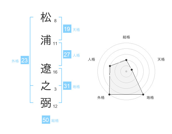 松浦 遼之弼さんを姓名の画数から五運を鑑定