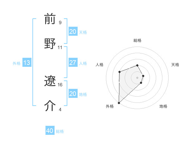 前野 遼介さんの総格は40画の2点!