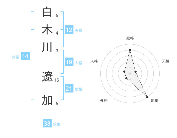 白木川 遼加さんを姓名の画数から五運を鑑定