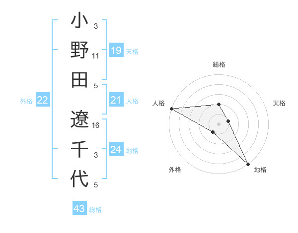 小野田 遼千代さんを姓名の画数から五運を鑑定