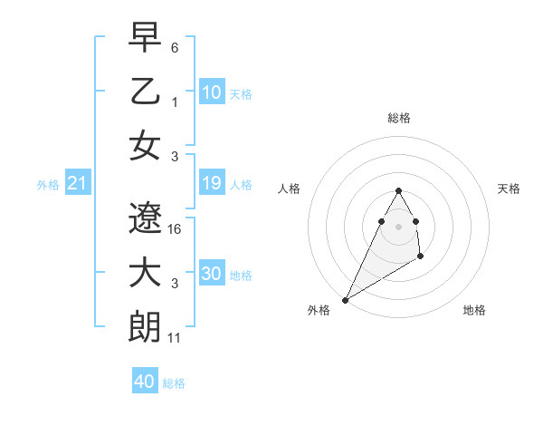 早乙女 遼大朗さんを姓名の画数から五運を鑑定