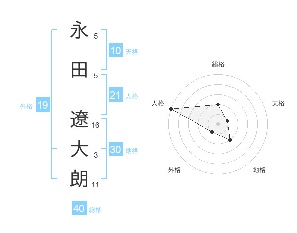 永田 遼大朗さんを姓名の画数から五運を鑑定