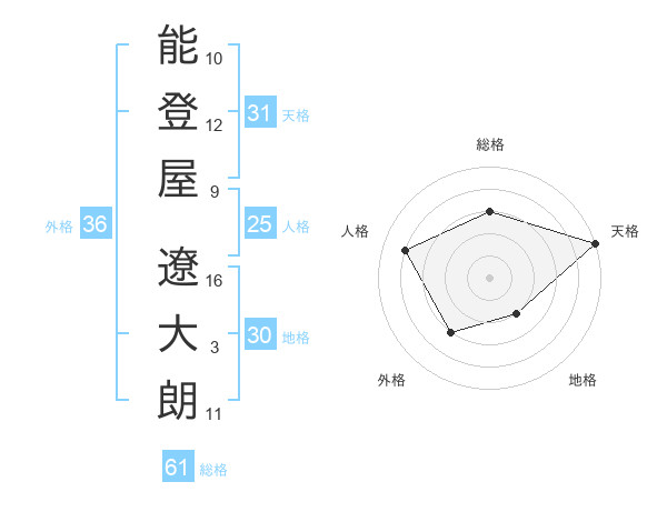 能登屋 遼大朗さんを姓名の画数から五運を鑑定