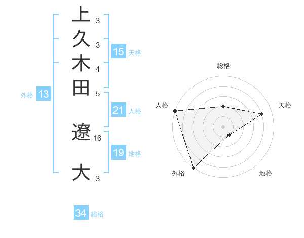 上久木田 遼大さんを姓名の画数から五運を鑑定